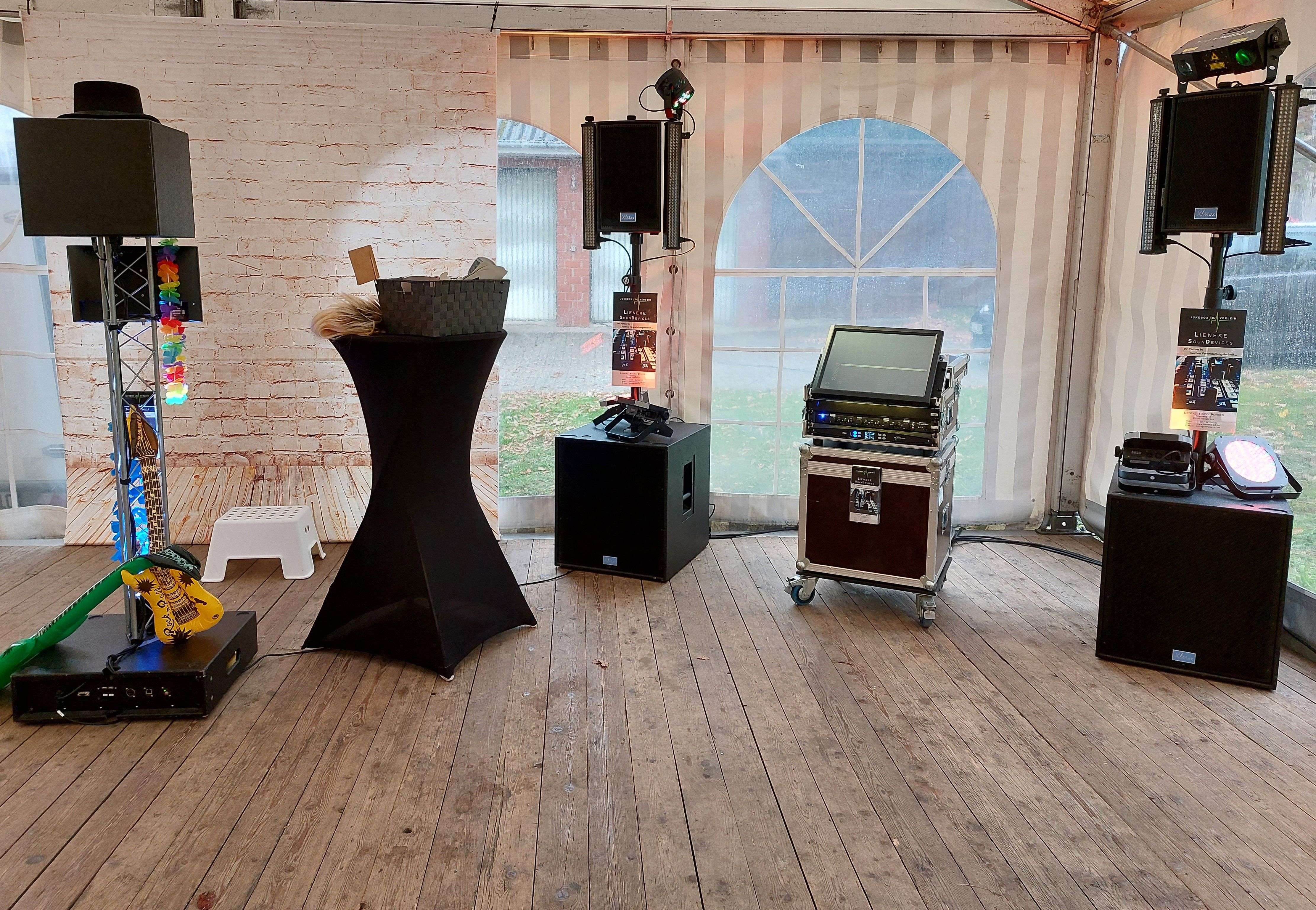 Selbstverständlich kann Material wie Nebelmaschine, Laser oder weitere Ambientebeleuchtung dazu gebucht werden.